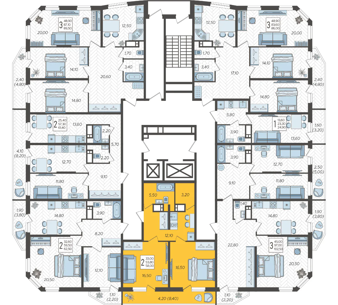 Дома комплекса оснащены подъездами удобными в том числе и для маломобильных граждан, скоростными лифтами, оригинальным интерьером.