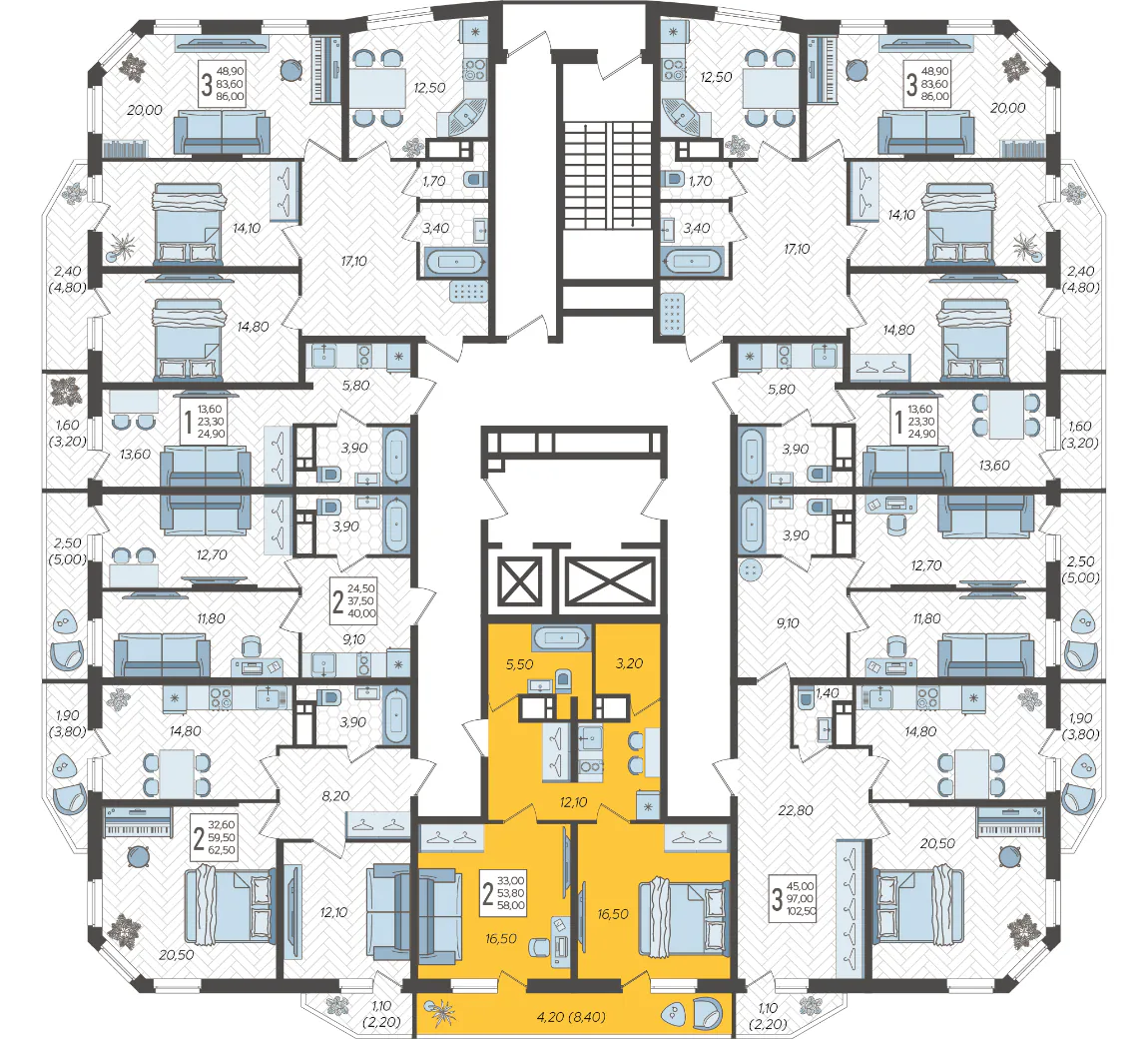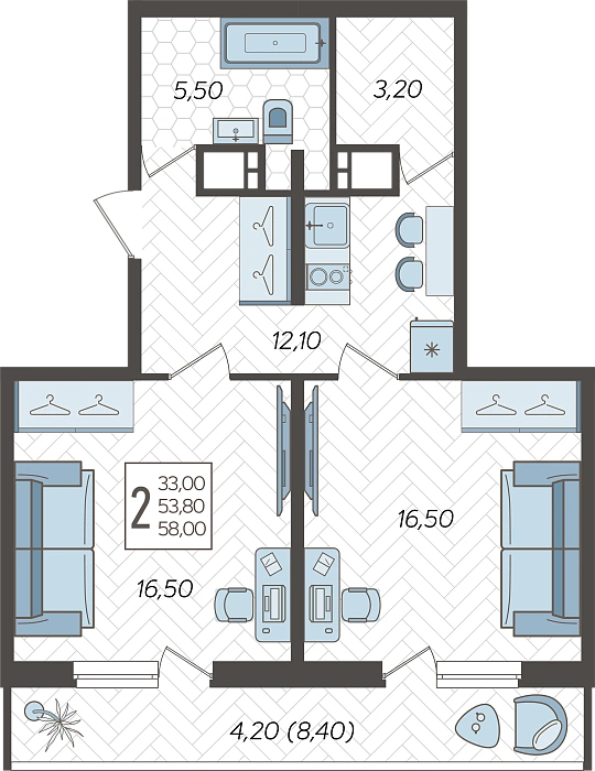 2-комнатная квартира №106, 58 м²
