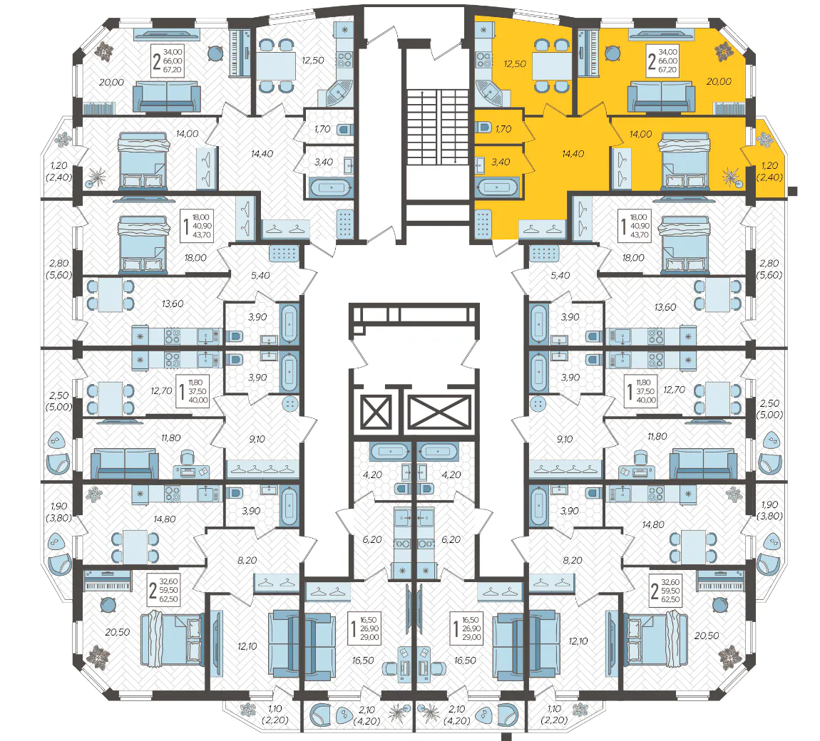 2-комнатная квартира №155, 67.2 м²