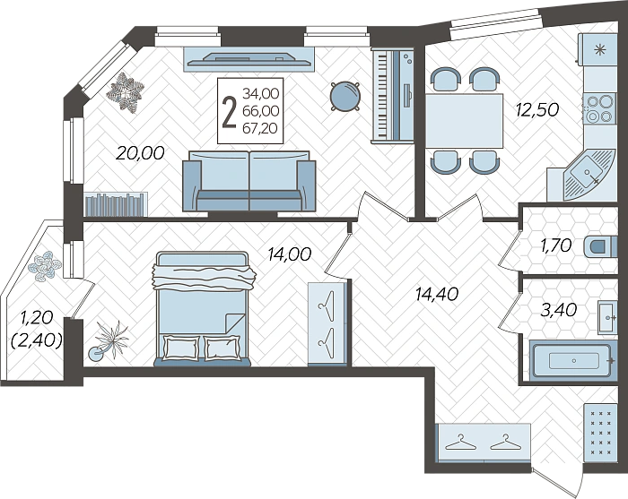 2-комнатная квартира №20, 67.2 м²
