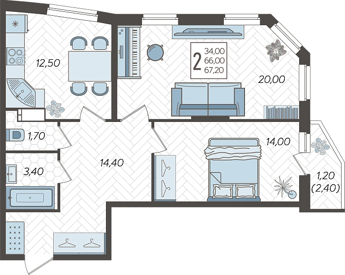 2-комнатная квартира №205, 67.2 м²