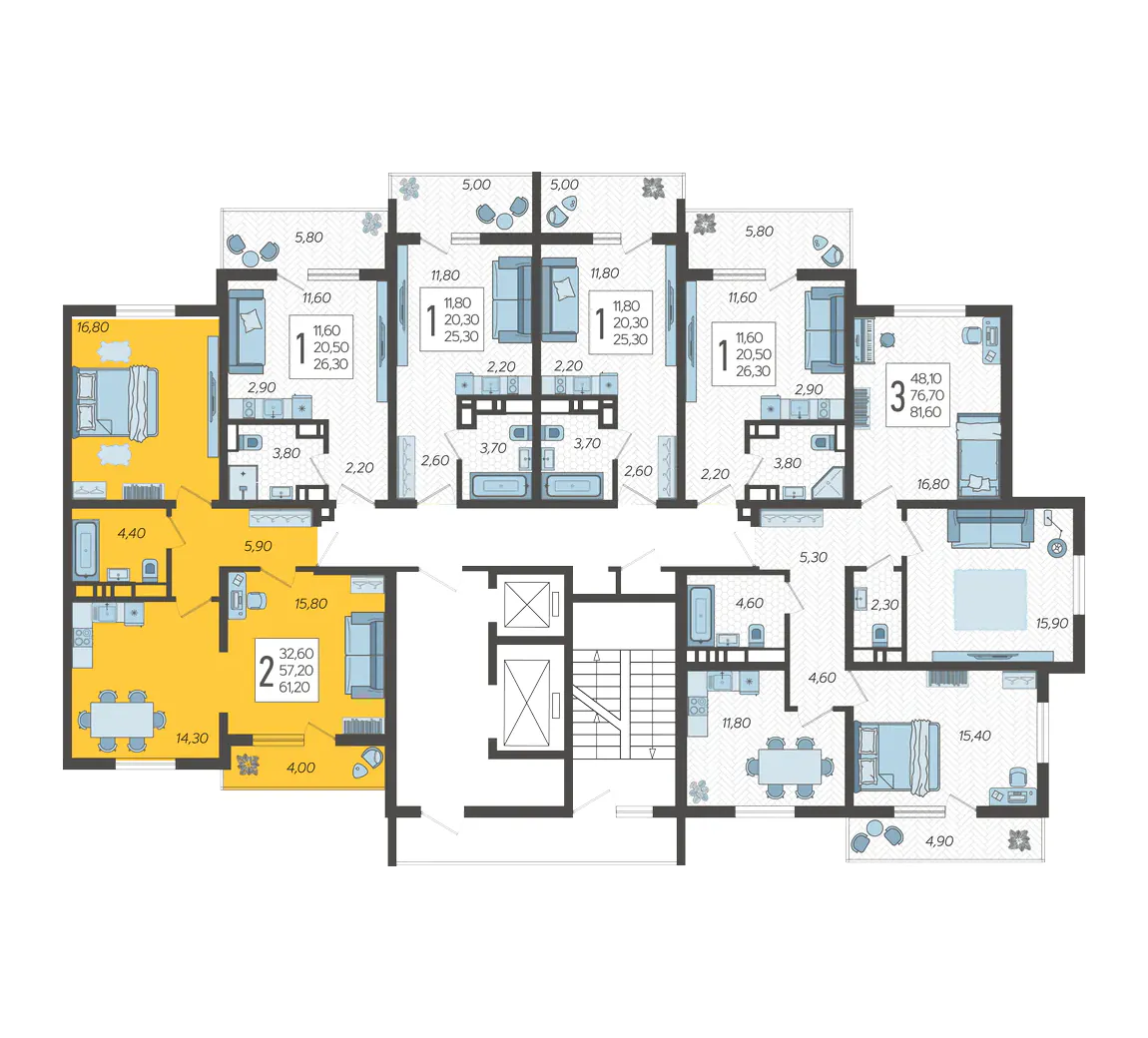 2-комнатная квартира №1, 61.2 м²