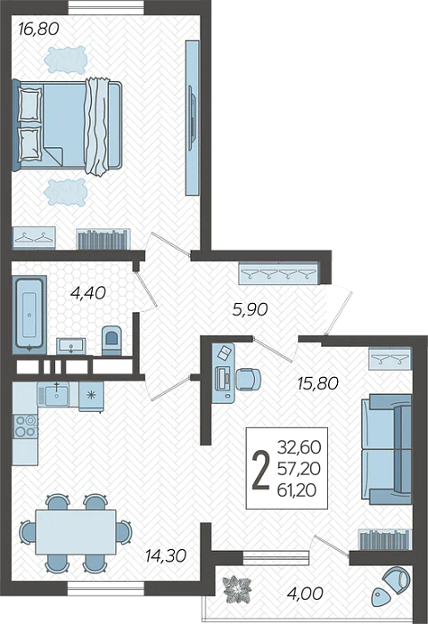 - Общая площадь 61.2 м²