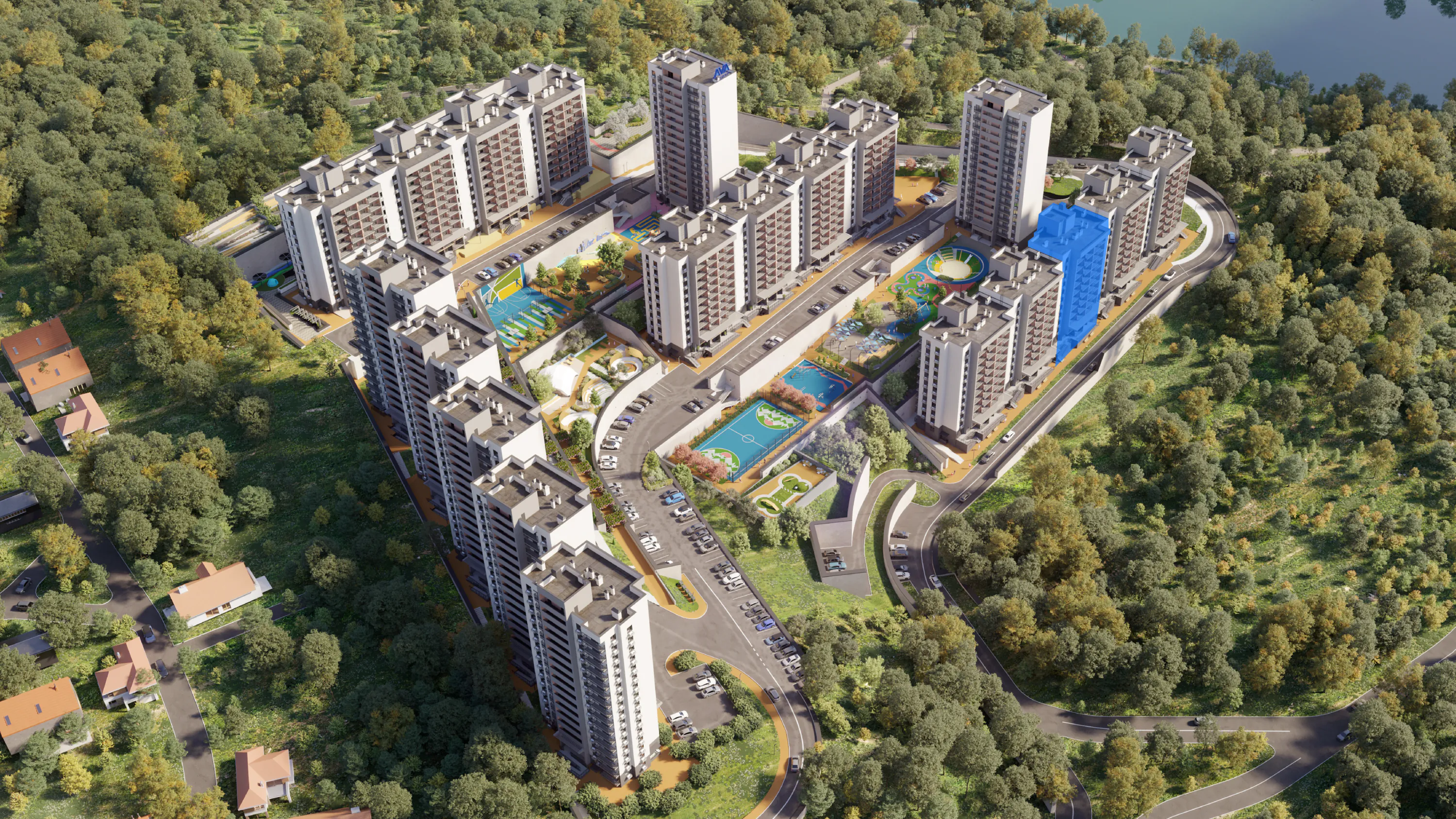 На территории комплекса появится все необходимое для комфортной жизни: магазины и кафе, рестораны и салоны красоты, детские и спортивные площадки, места для отдыха и выгула собак. Современная школа и детский сад также расположатся рядом — добраться до них можно за несколько минут.