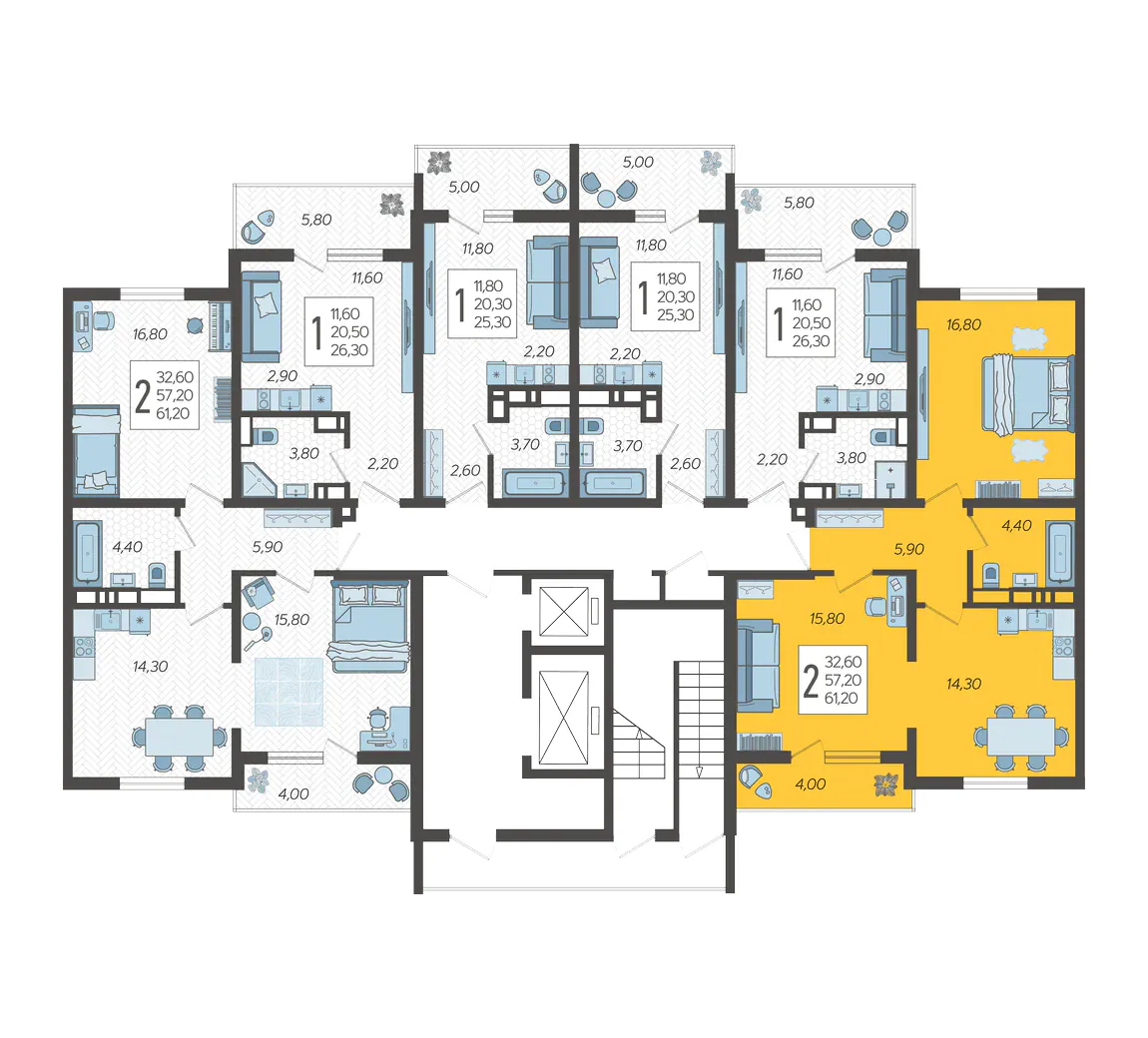 2-комнатная квартира №78, 61.2 м²