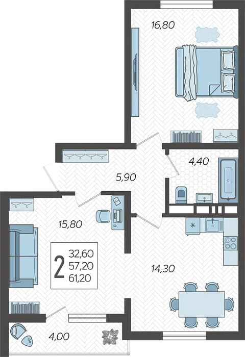 - Общая площадь 61.2 м²