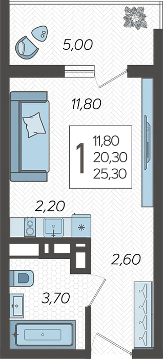 - Студия №46, 25.3 м²