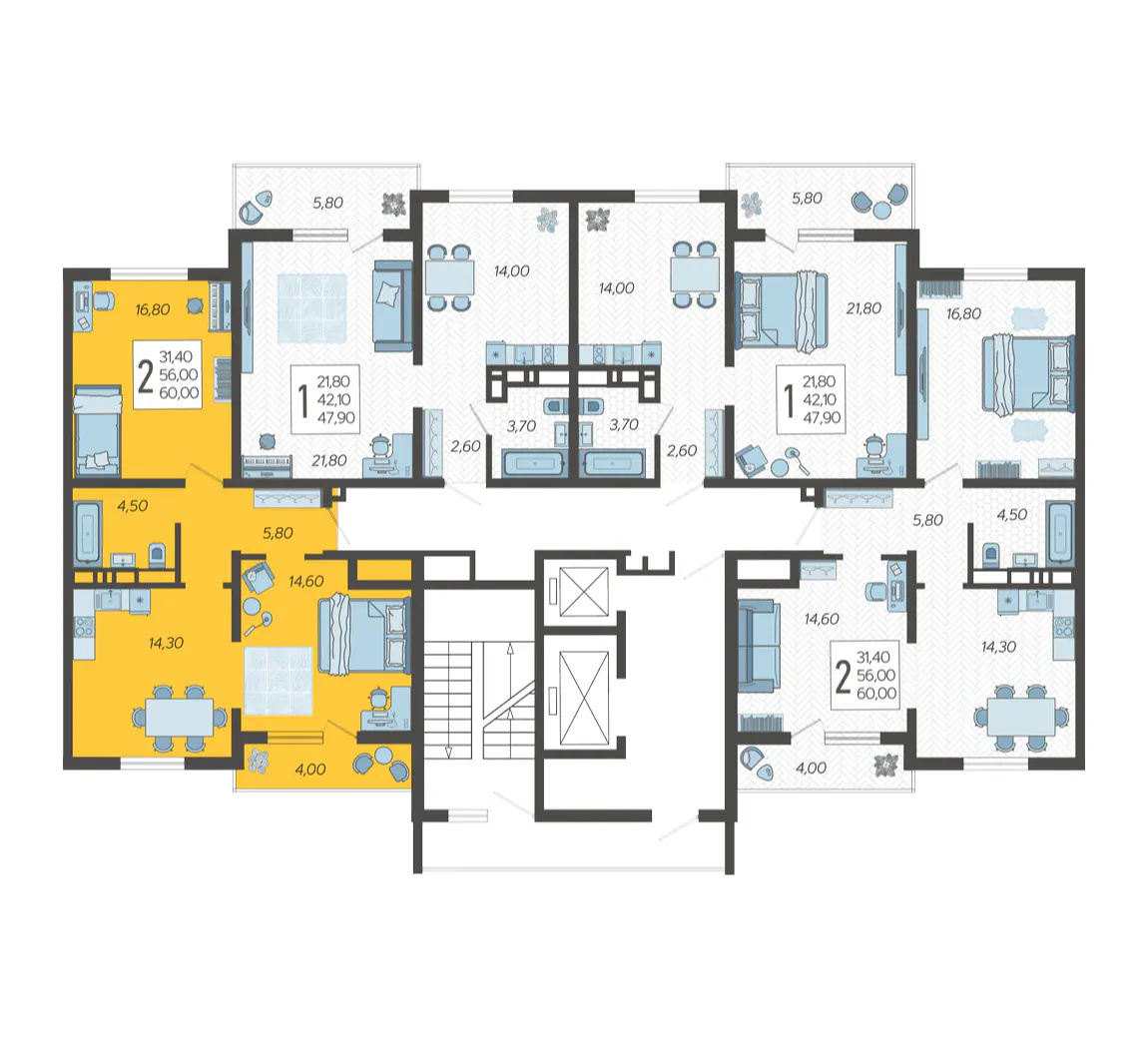На территории комплекса появится все необходимое для комфортной жизни: магазины и кафе, рестораны и салоны красоты, детские и спортивные площадки, места для отдыха и выгула собак. Современная школа и детский сад также расположатся рядом — добраться до них можно за несколько минут.