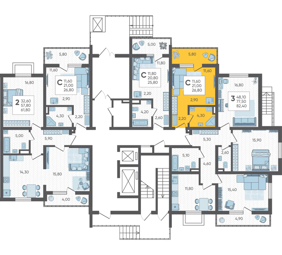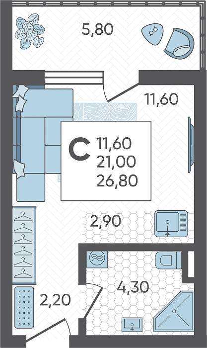 - Студия №4, 26.8 м²