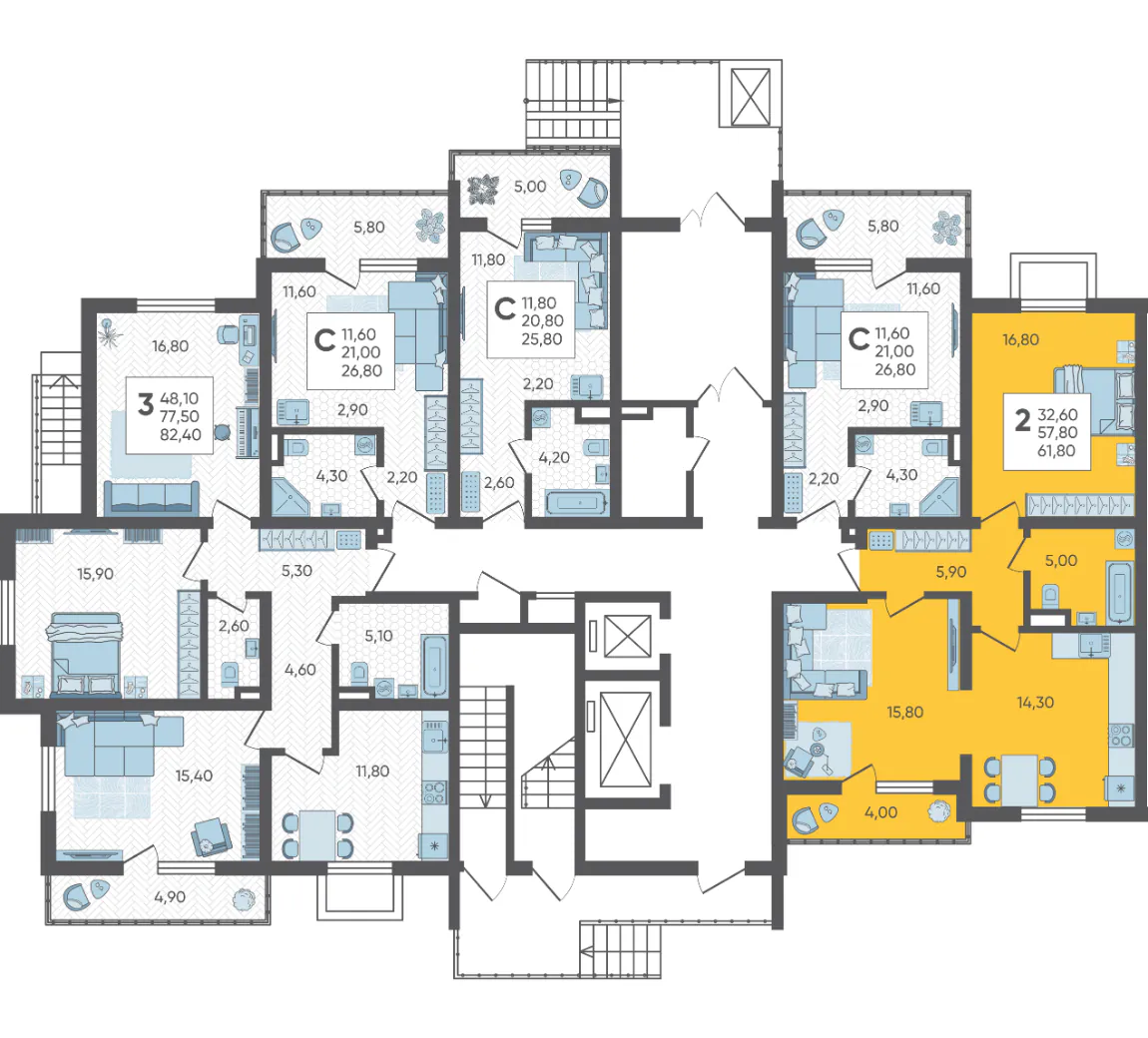 На территории комплекса появится все необходимое для комфортной жизни: магазины и кафе, рестораны и салоны красоты, детские и спортивные площадки, места для отдыха и выгула собак. Современная школа и детский сад также расположатся рядом — добраться до них можно за несколько минут.