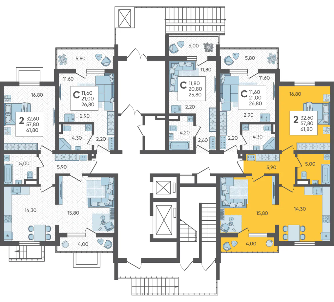 2-комнатная квартира №64, 61.8 м²