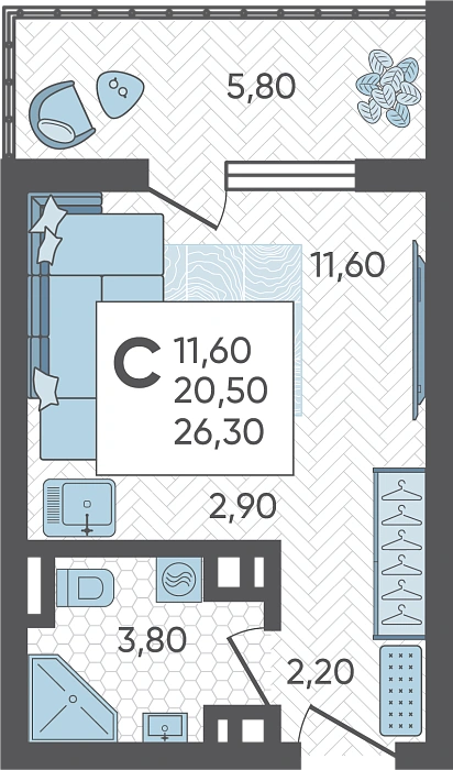 - Студия №184, 26.3 м²