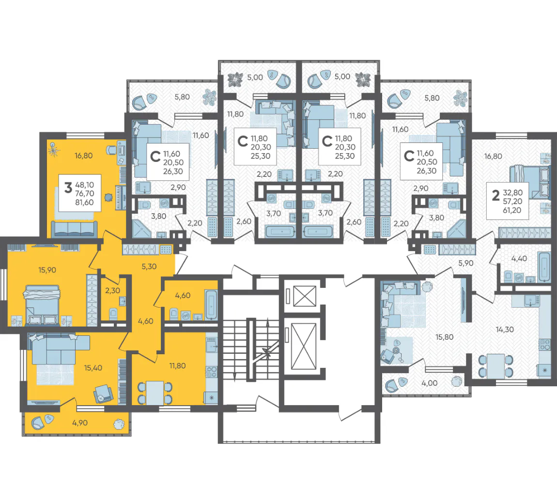 3-комнатная квартира №189, 81.6 м²