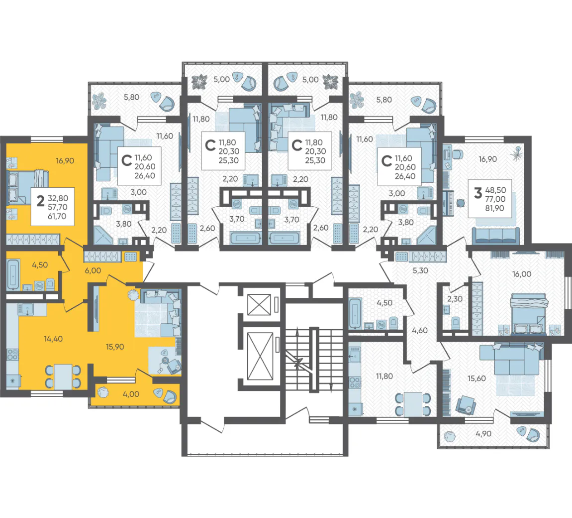 2-комнатная квартира №54, 61.7 м²