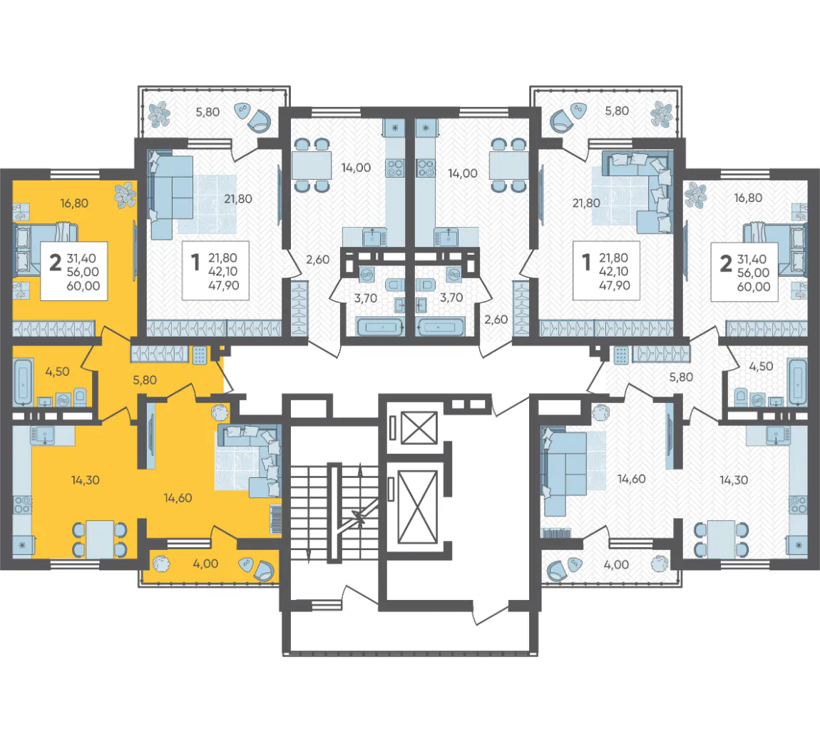 На территории комплекса появится все необходимое для комфортной жизни: магазины и кафе, рестораны и салоны красоты, детские и спортивные площадки, места для отдыха и выгула собак. Современная школа и детский сад также расположатся рядом — добраться до них можно за несколько минут.