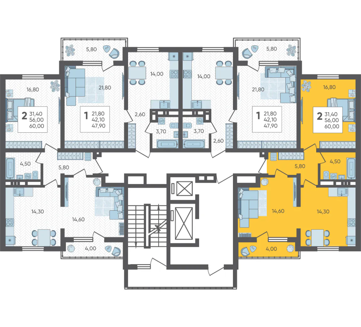 2-комнатная квартира №12, 60 м²