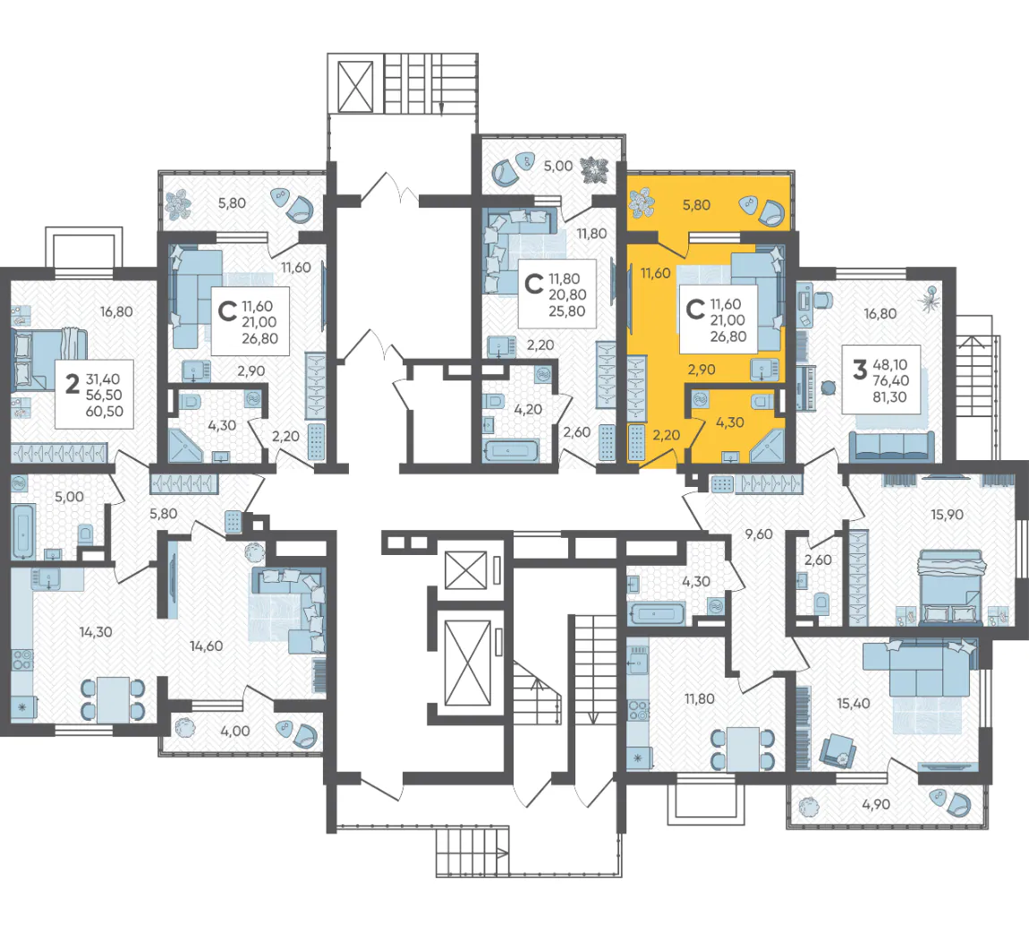 - Студия №4, 26.8 м²