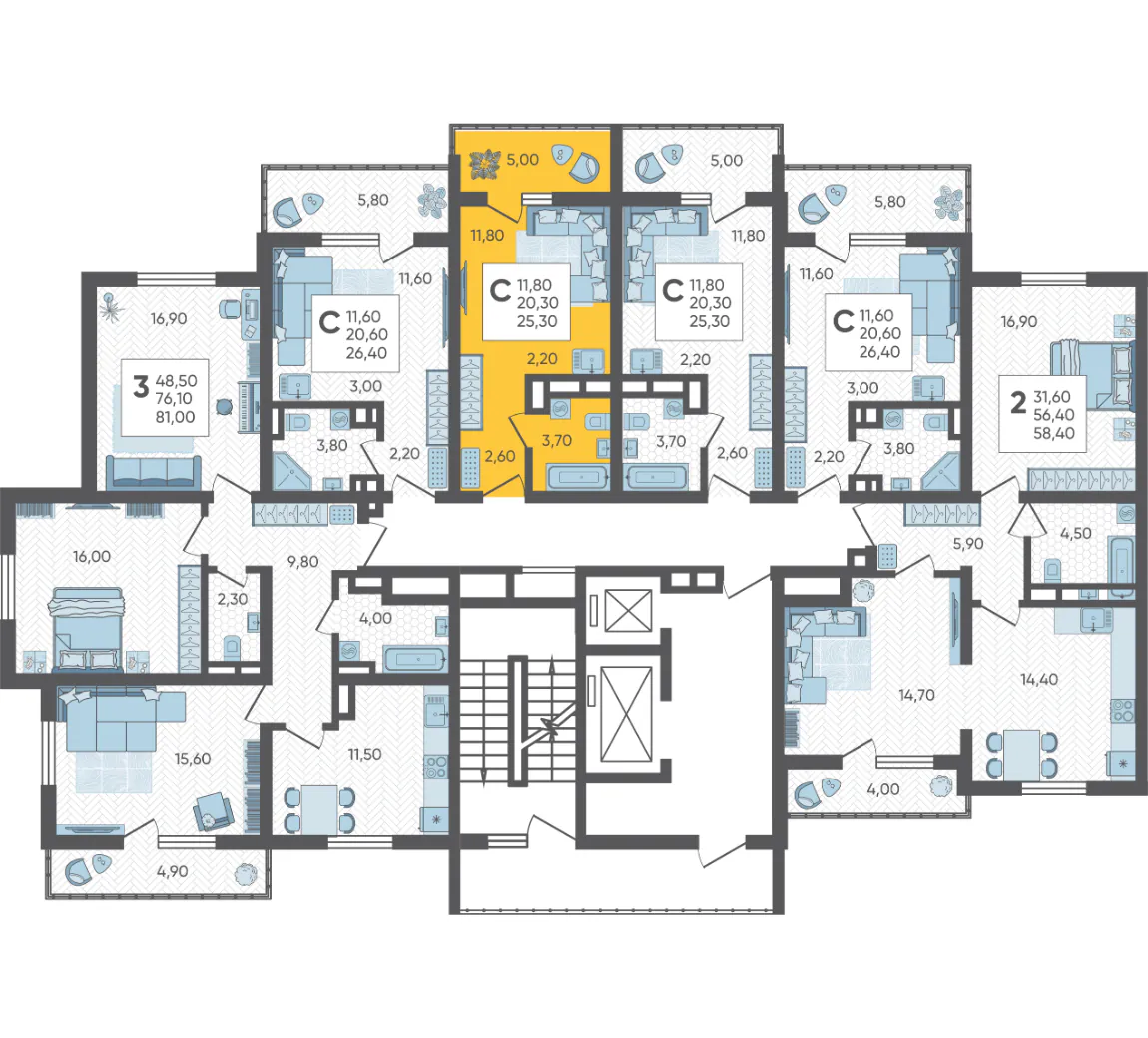 - Жилая площадь 11.8 м²