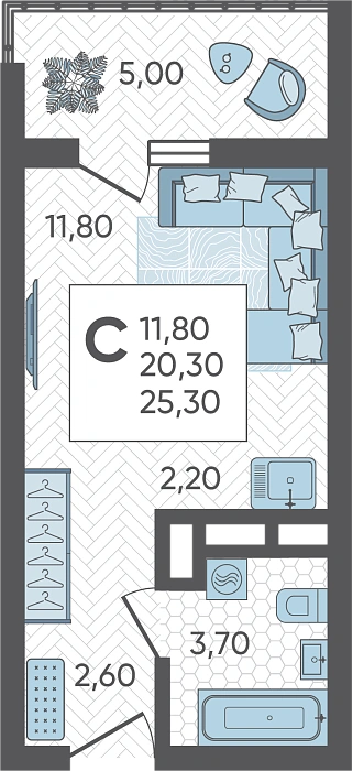 Студия №424, 25.3 м²