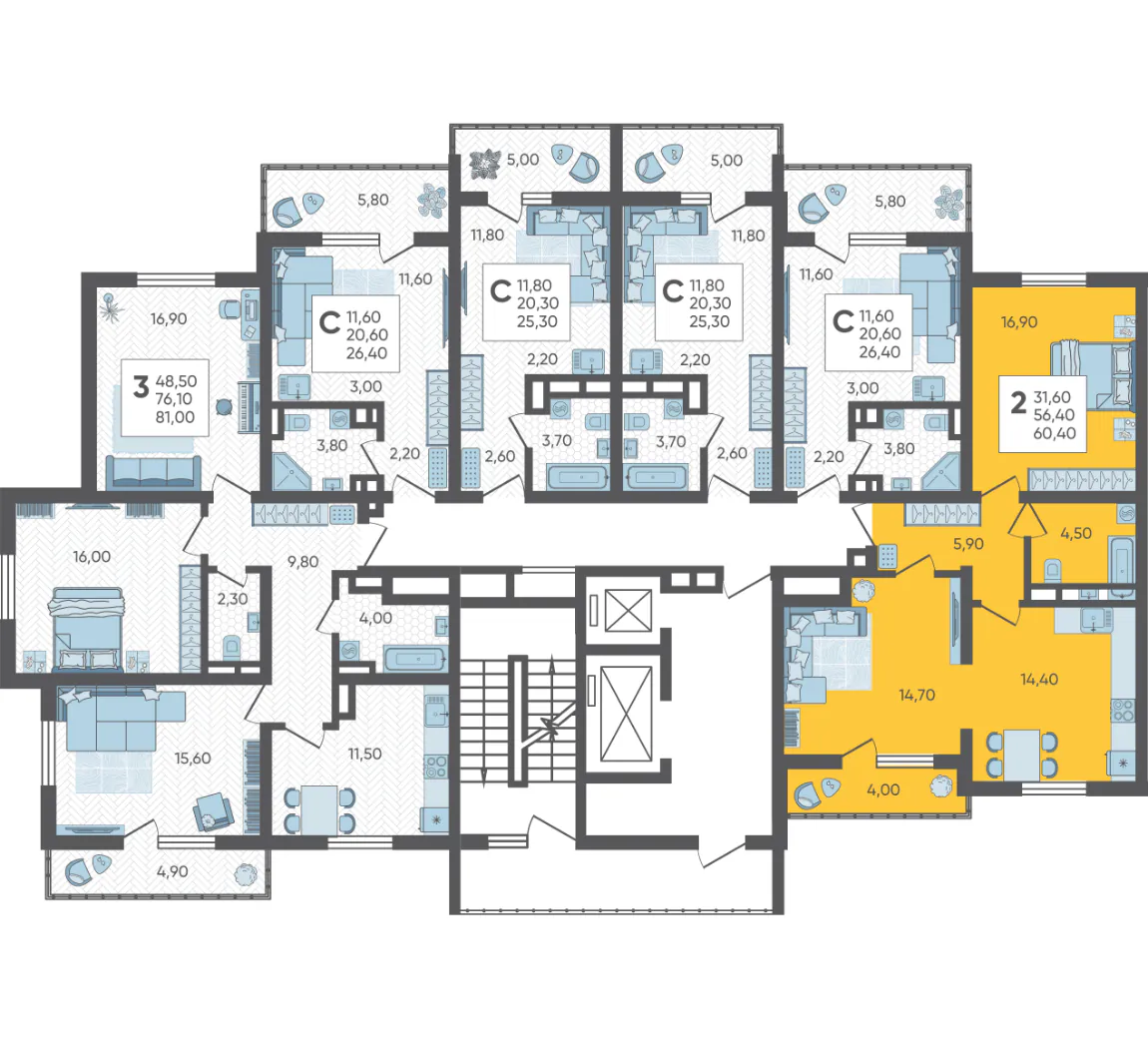 2-комнатная квартира №469, 60.4 м²