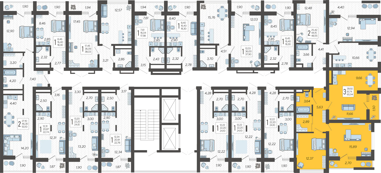 3-комнатная квартира №65, 65.94 м²