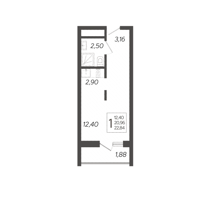 - Общая площадь 23.1 м²