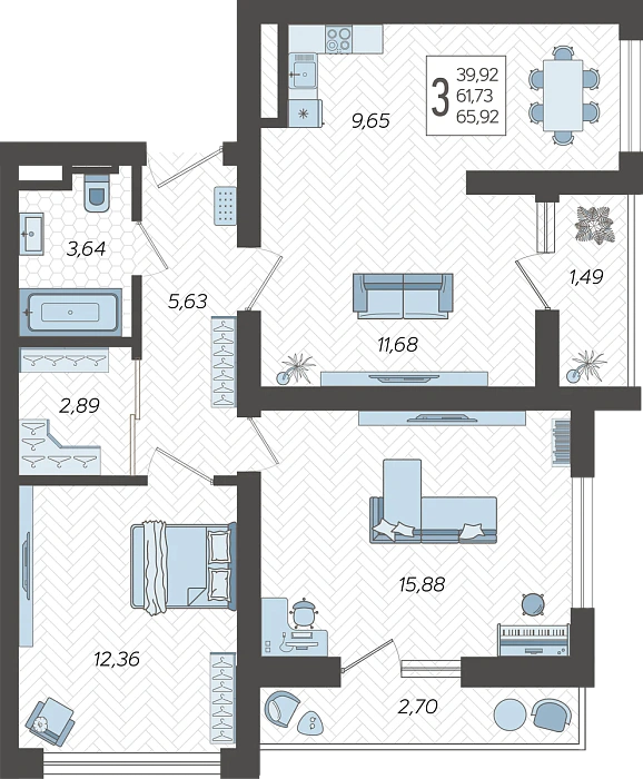 - Общая площадь 65.92 м²