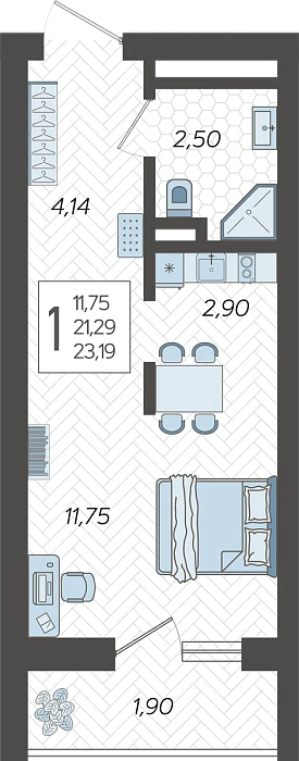 - Общая площадь 23.19 м²
