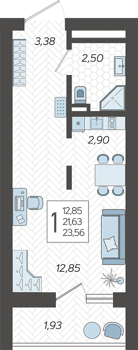 - Общая площадь 23.56 м²
