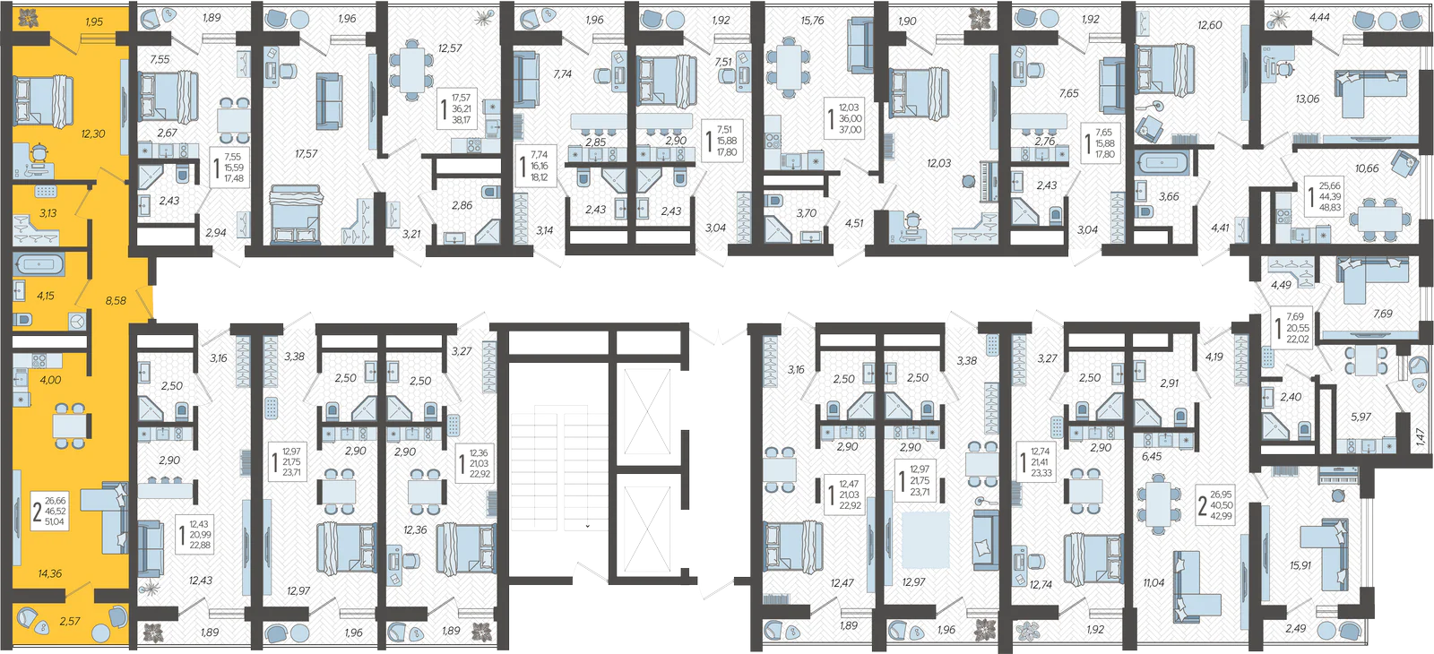 2-комнатная квартира №221, 51.04 м²