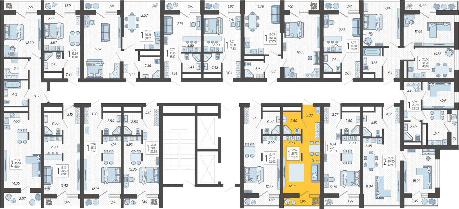- Жилая площадь 12.97 м²