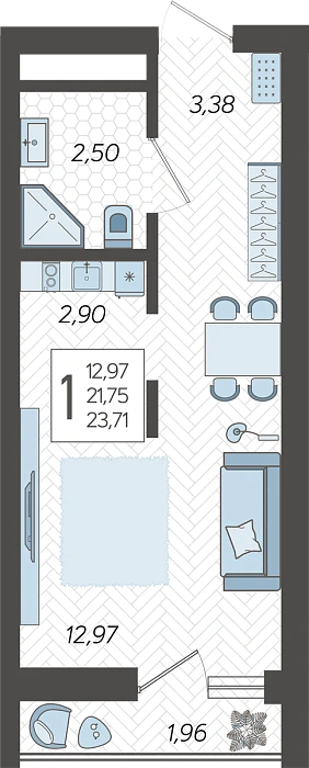 - Общая площадь 23.71 м²
