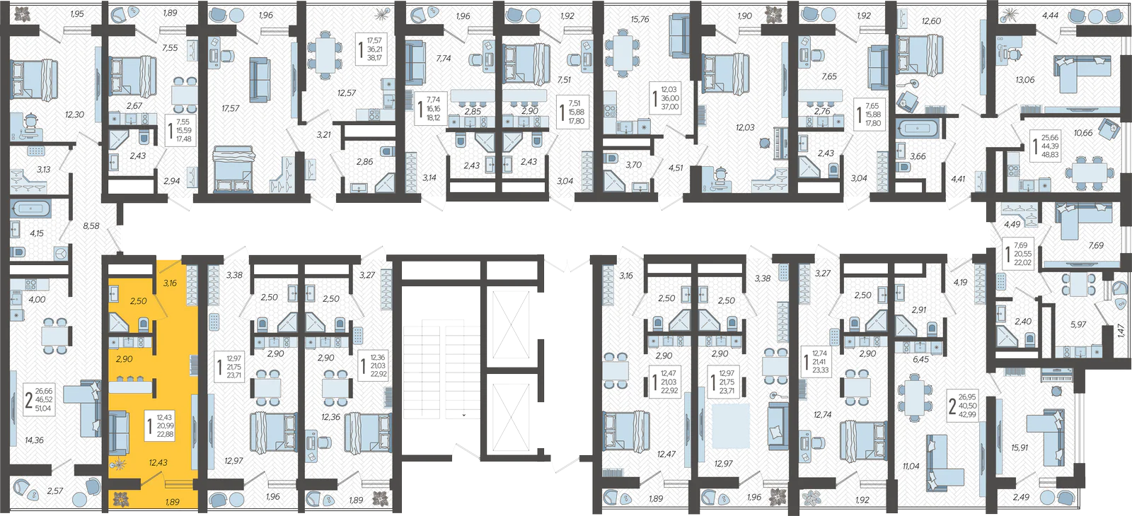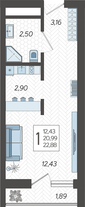- Общая площадь 22.88 м²