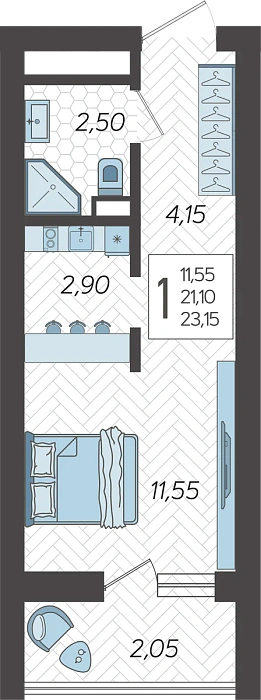 - Жилая площадь 11.55 м²