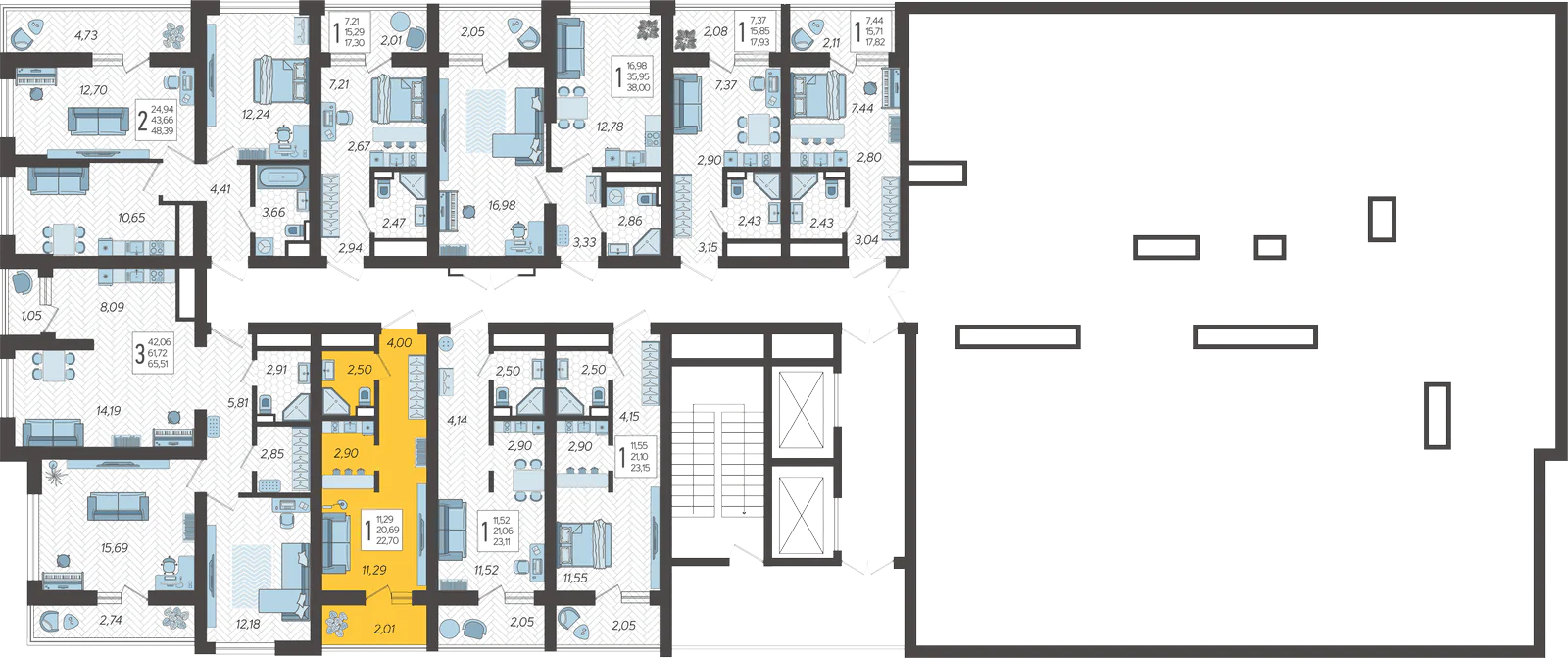 - Жилая площадь 11.29 м²