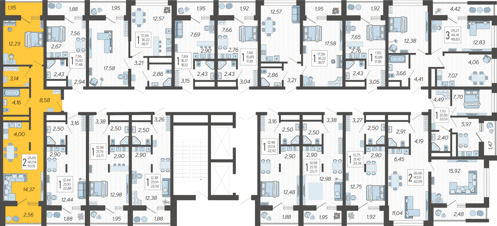 2-комнатная квартира №157, 51.05 м²