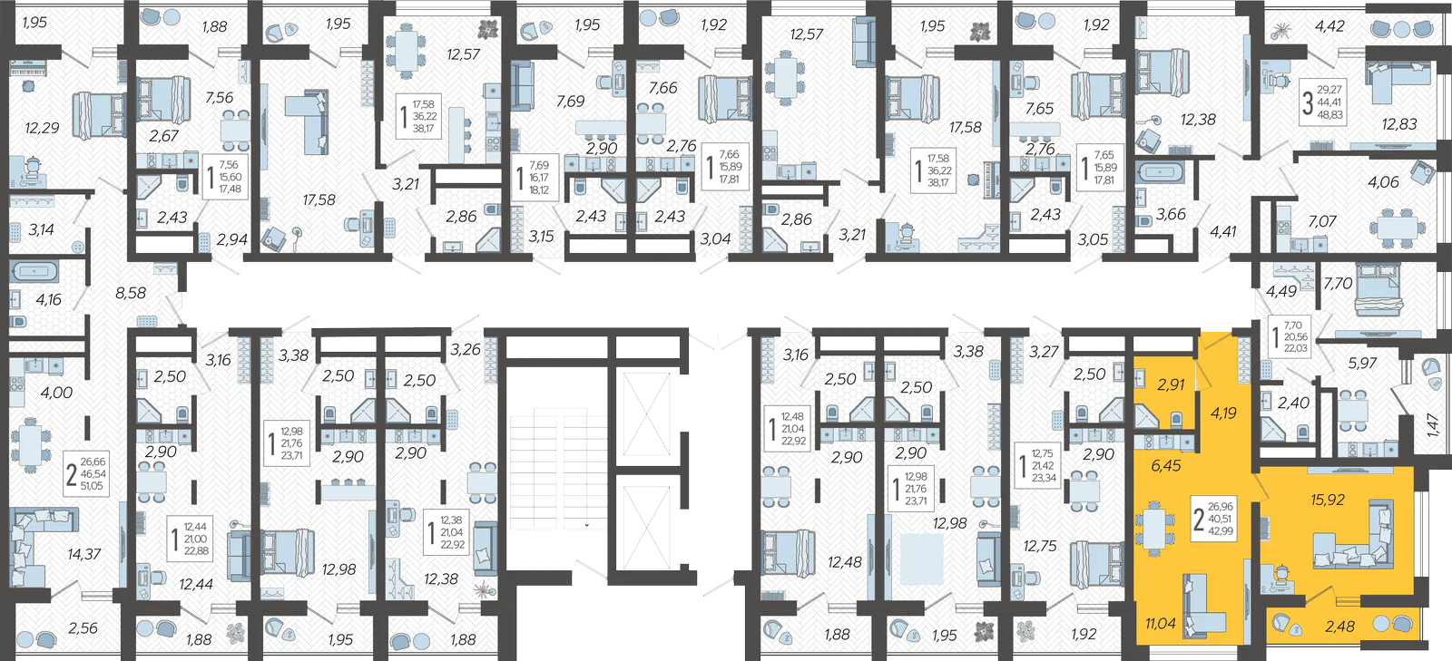 2-комнатная квартира №166, 42.99 м²