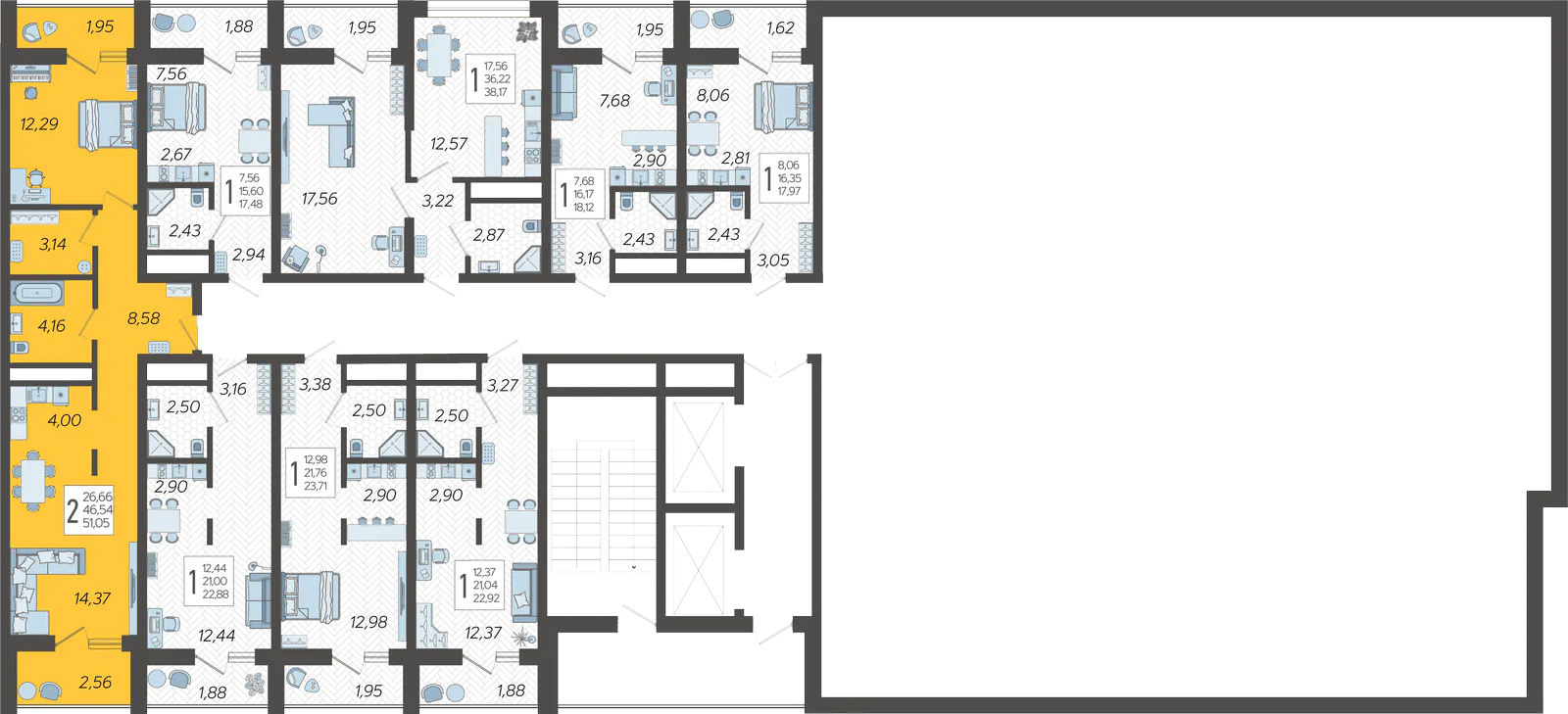 2-комнатная квартира №285, 51.05 м²