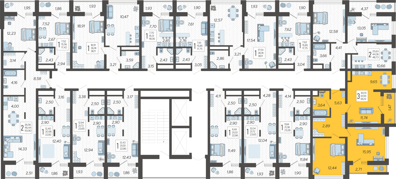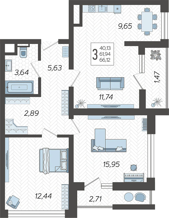3-комнатная квартира №50, 66.12 м²