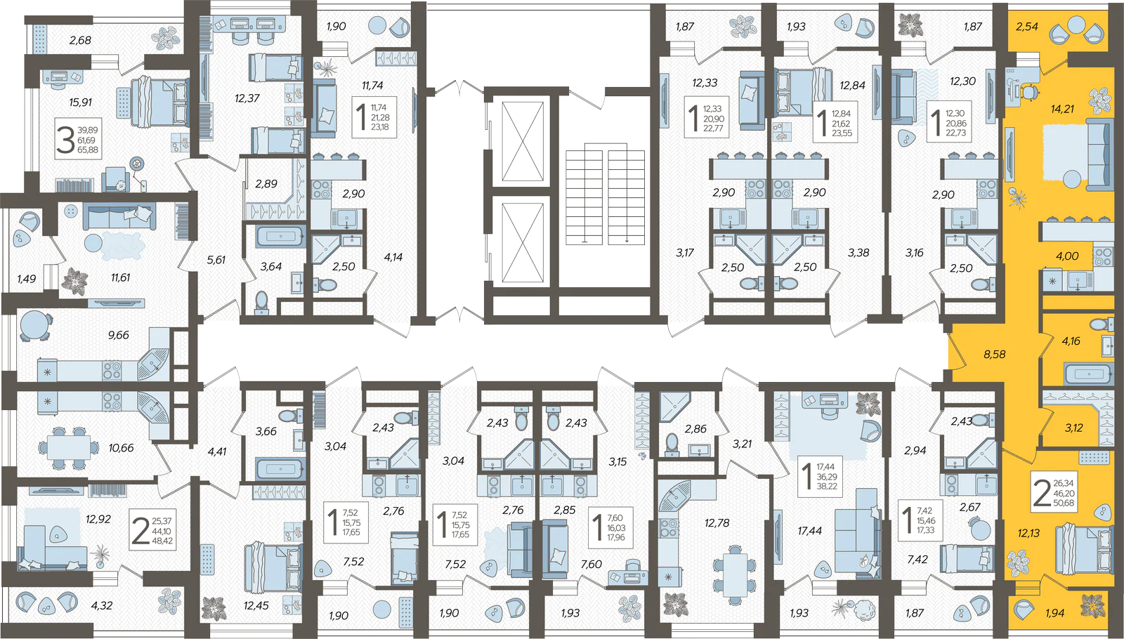 2-комнатная квартира №180, 52.2 м²