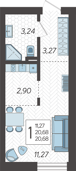 - Общая площадь 20.68 м²