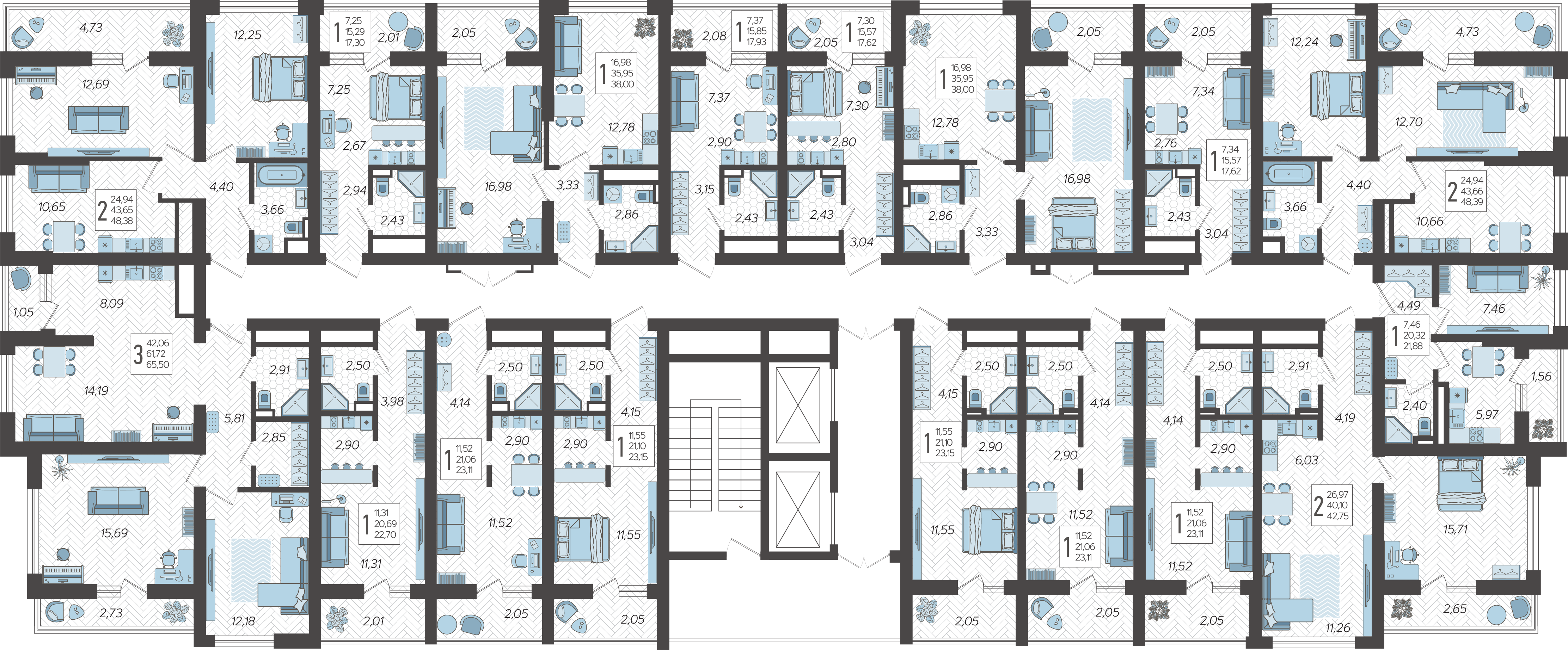 2-комнатная квартира №91, 42.75 м²
