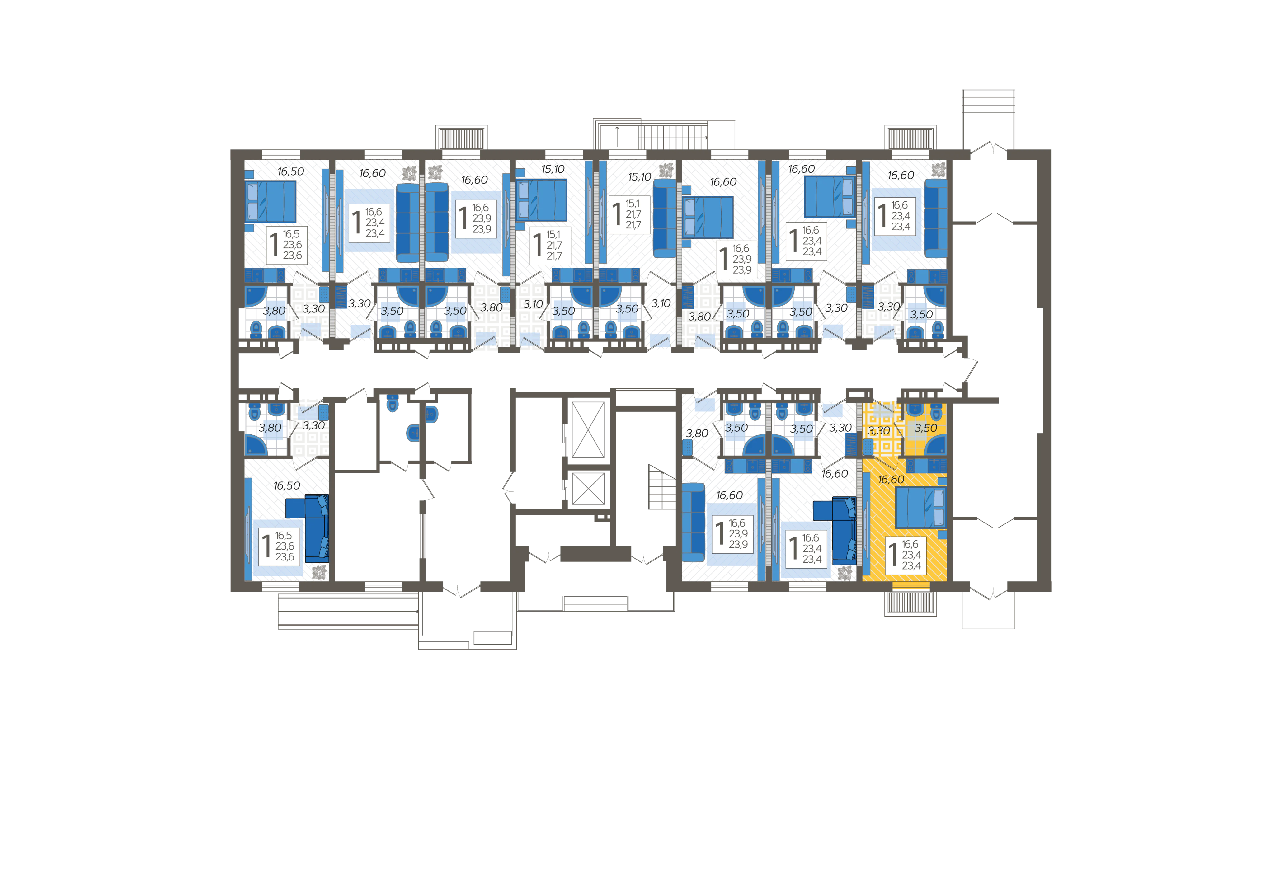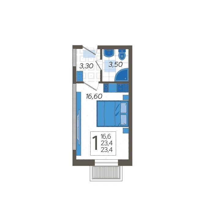 - Жилая площадь 16.6 м²