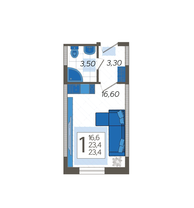 • Жилая площадь 16.6 м²