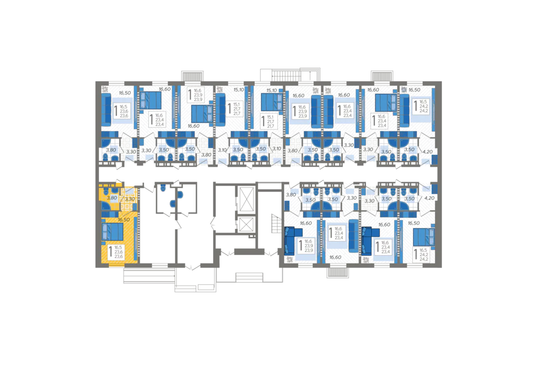 - Жилая площадь 16.5 м²