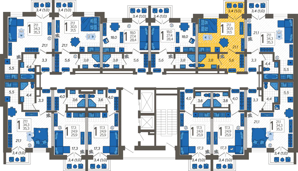 - Жилая площадь 21.1 м²