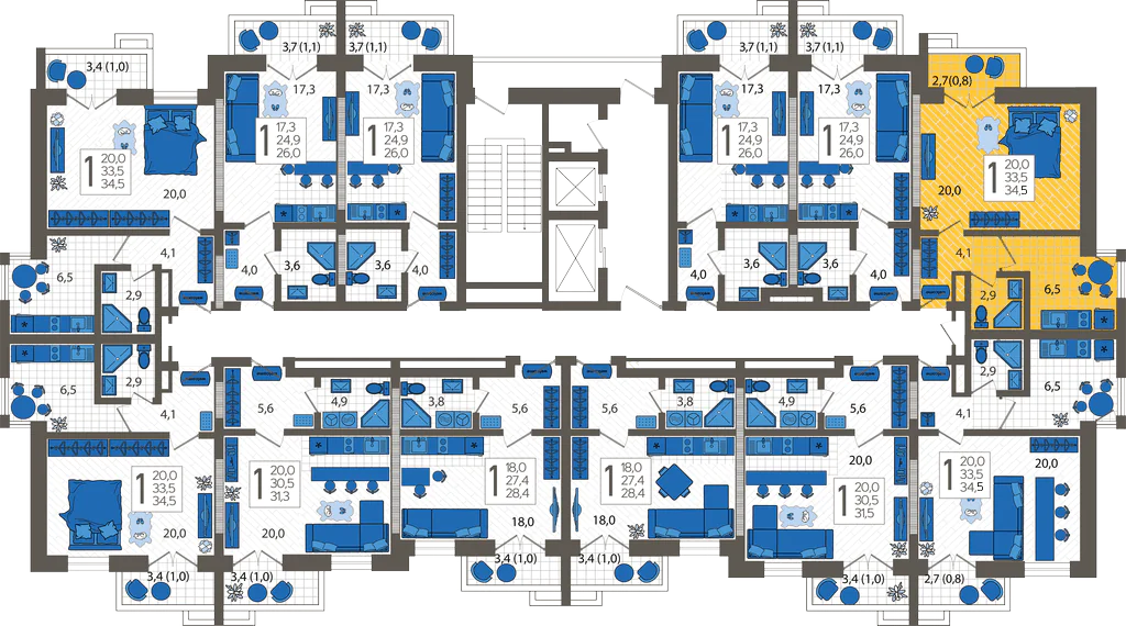 1-комнатная квартира №73, 34.5 м²